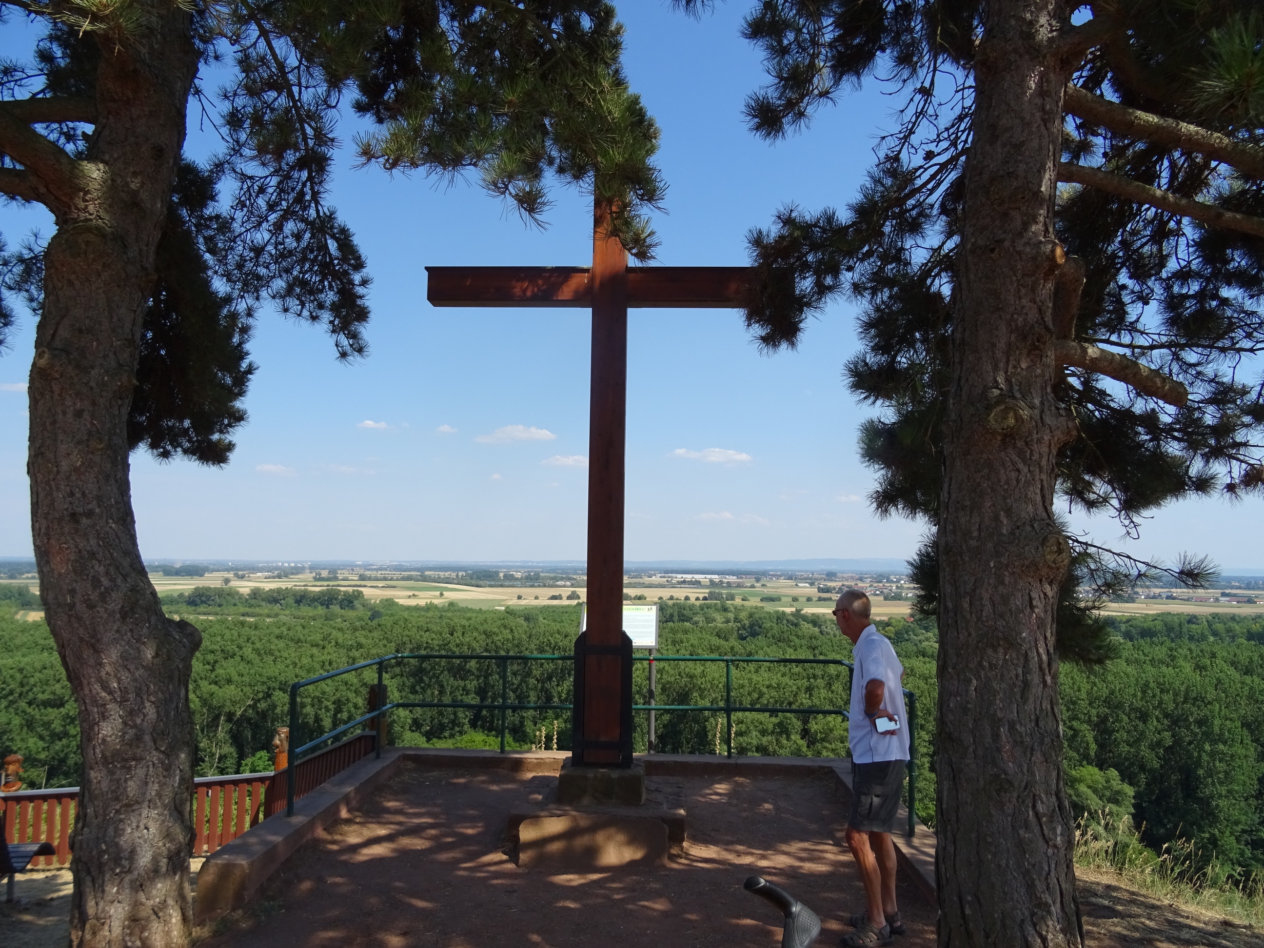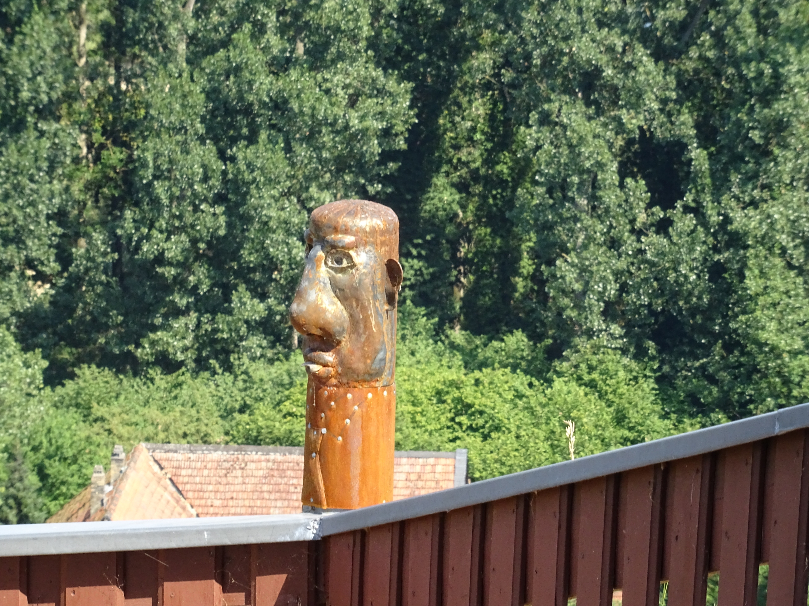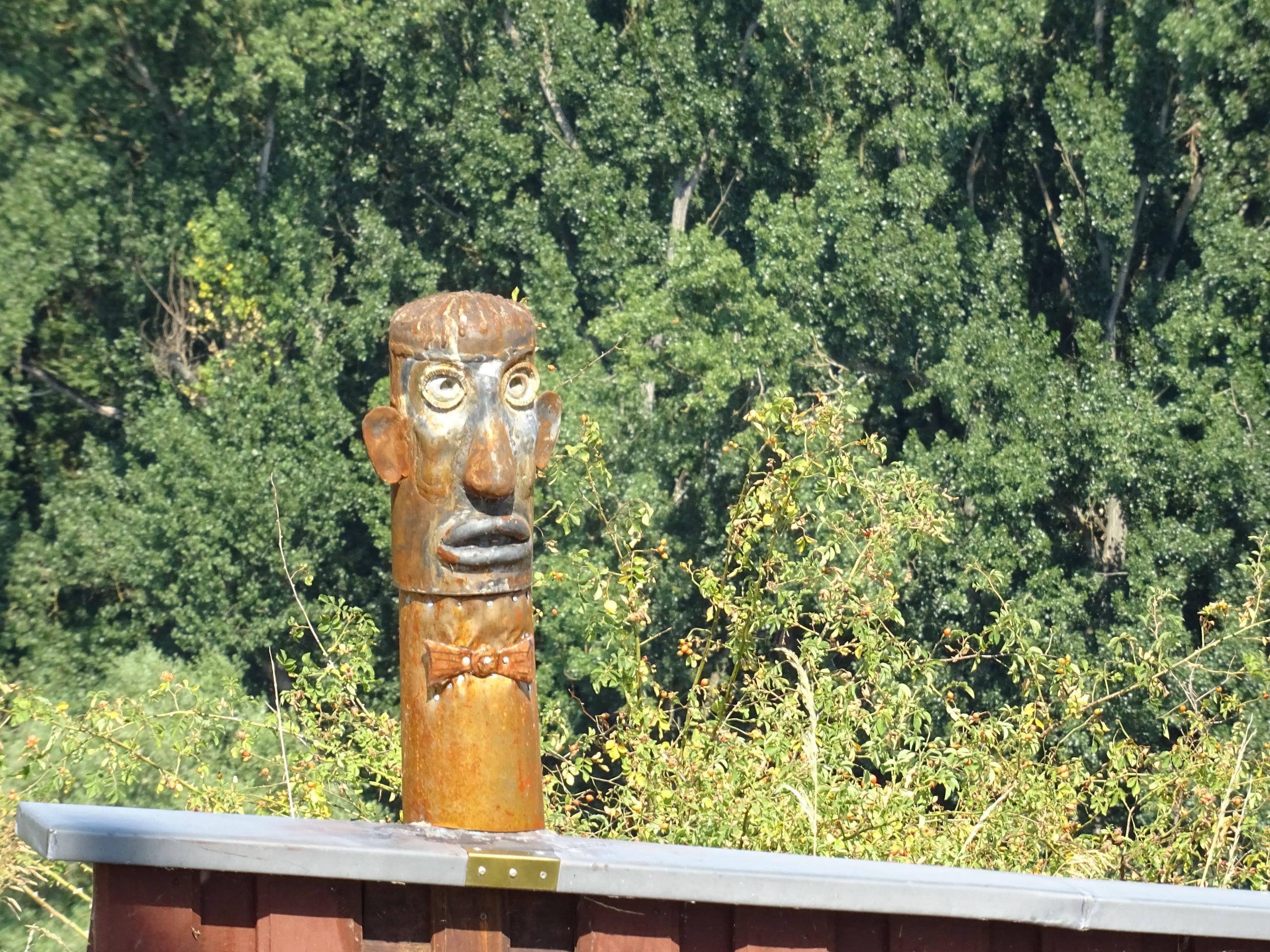 S10 Auf dem Terrassenweg geht es weiter Ein weiterer Haltepunkt lässt eine weiteren Blick zu. Klaus sieht das auch so! Zwei Holzskulpturen recht versteckt! Aber das Teleobjektiv bringt es besser zur Geltung. Der Abschied. Schaut er nicht traurig?