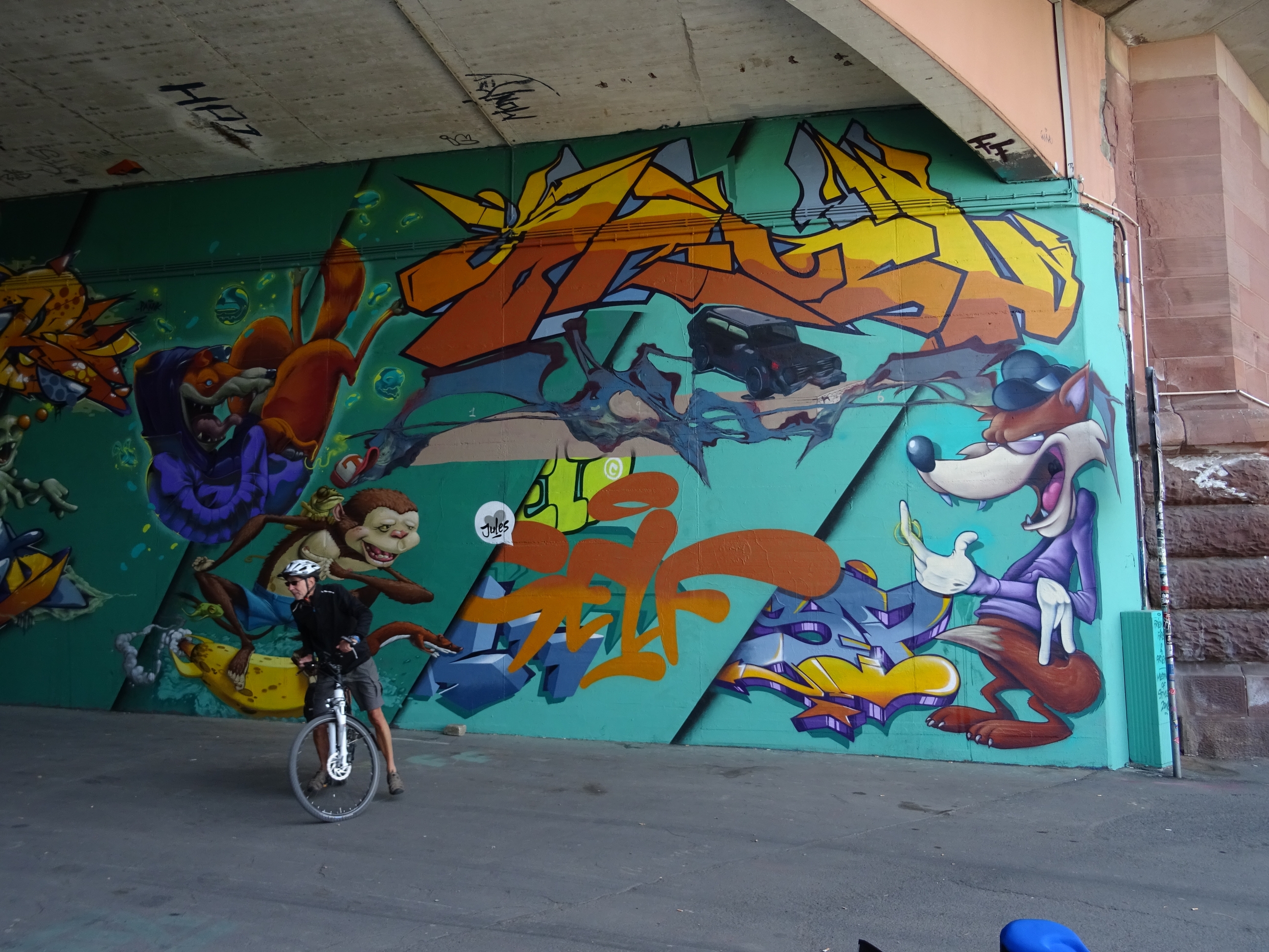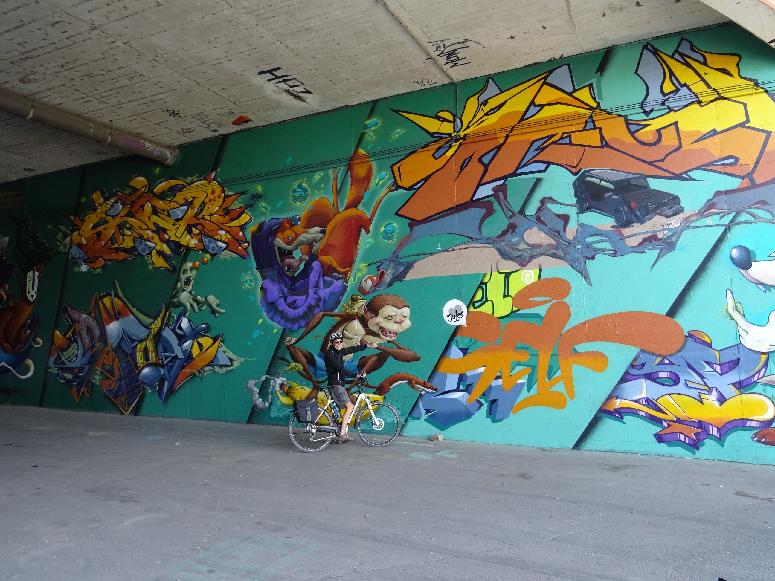 Beeindruckende Graffitti-Zeichnungen in Mainz-Kastel. Zumindest haben sie Klaus start beeindruckt, wie man am nächsten Bild unschwer erkennen kann……