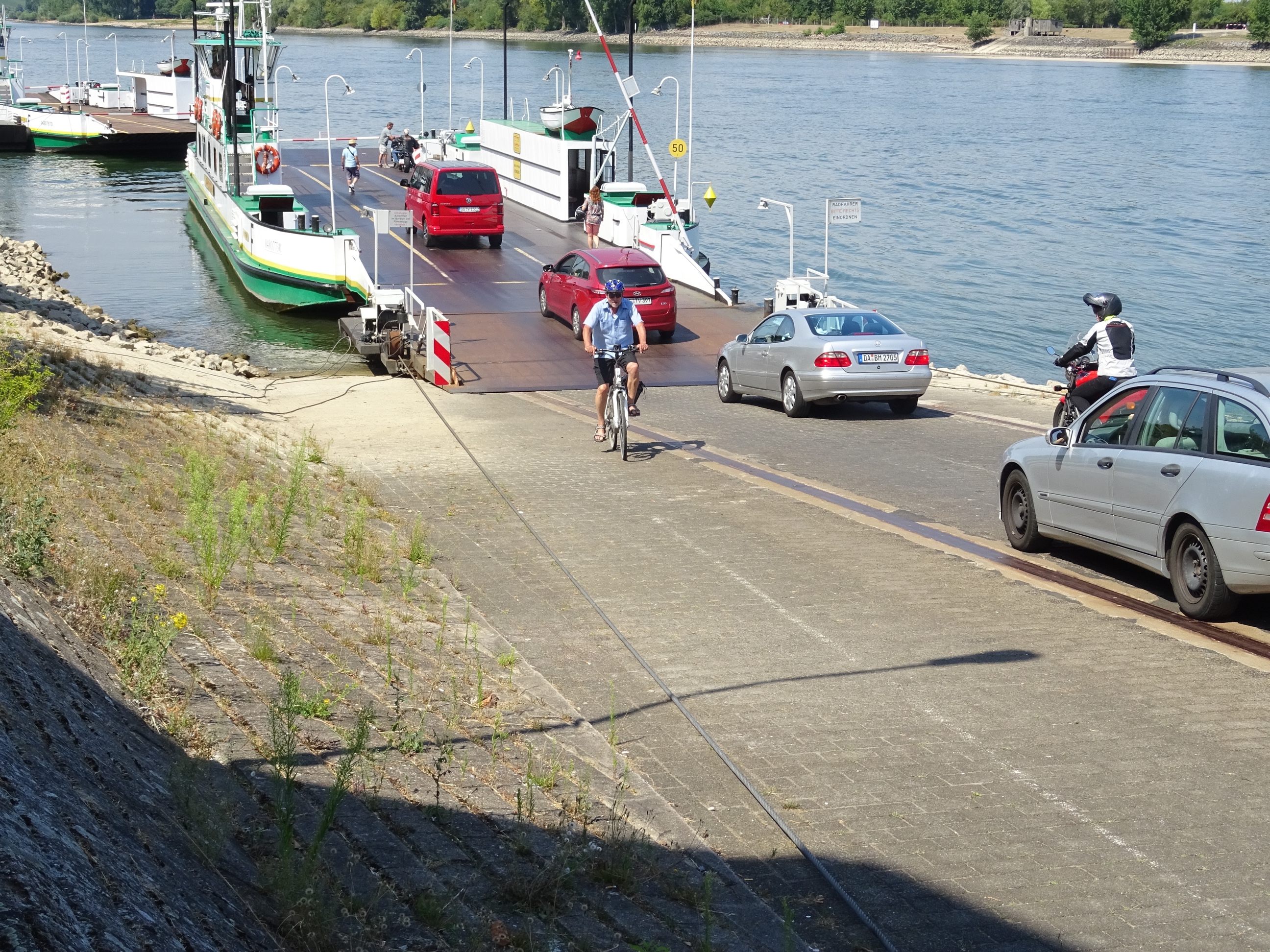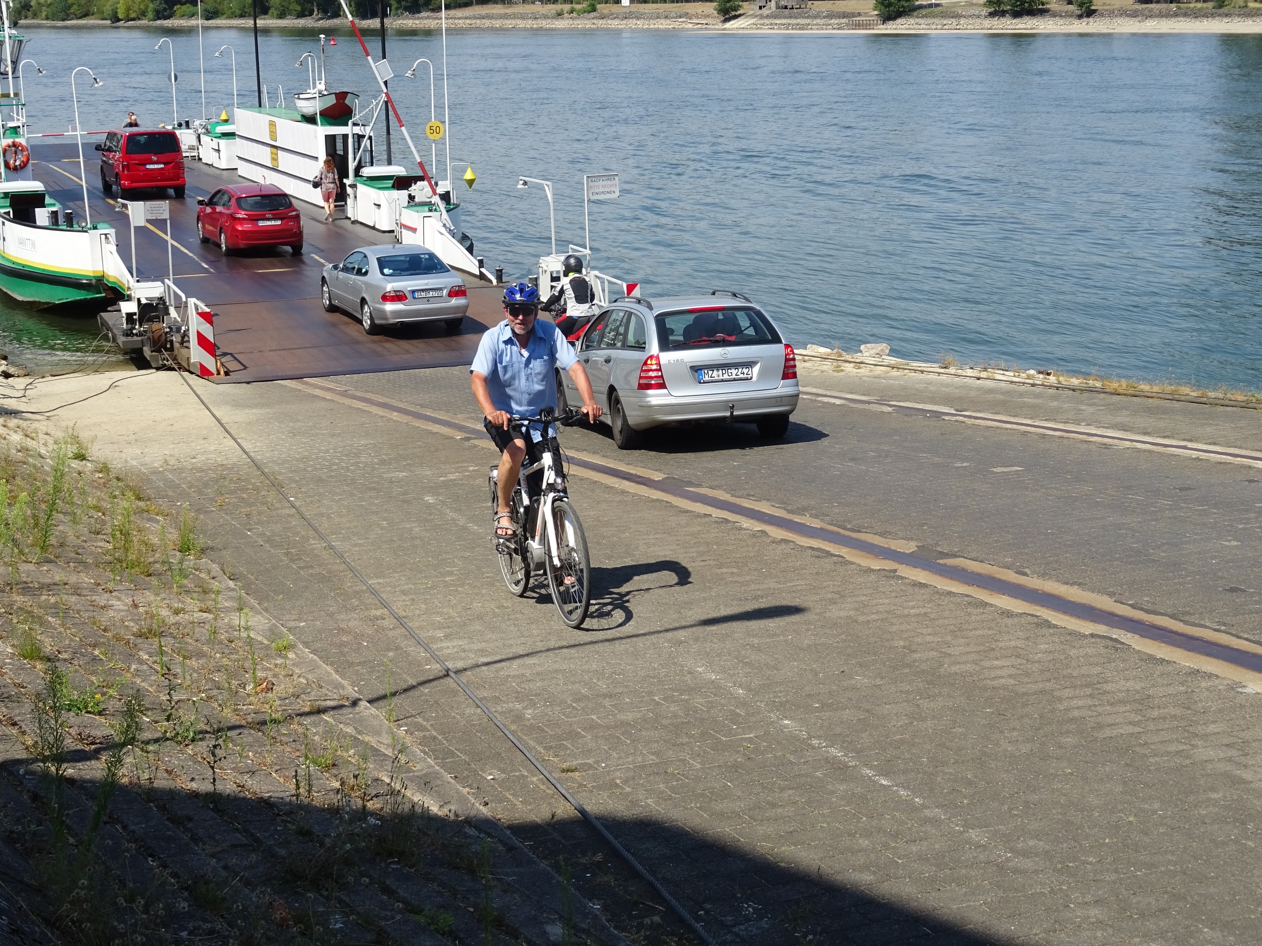 Gut gestärkt, ist die Steigung von der Fähre kein Problem! Nur an der Haltung muss noch ein wenig gearbeitet werden!